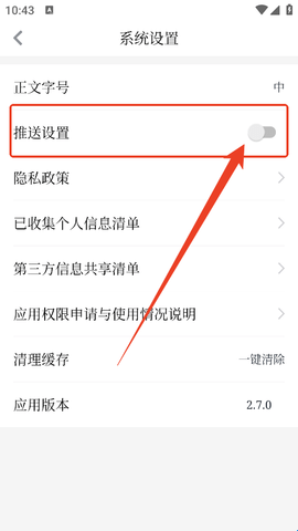 3、大家将【推送设置】后面的这个开关关掉就行了。