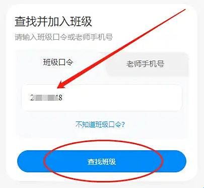 4、输入班级口令,点击“查找班级”按钮即可用班级口令查找班级。