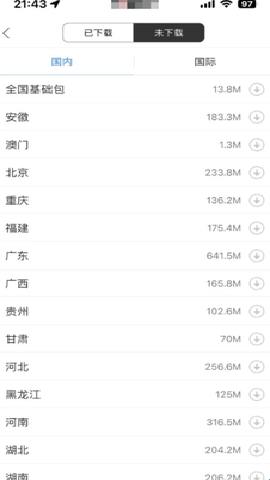 3、百度地图离线版过一会将会将各个地区的地图进行下载到用户手机中!