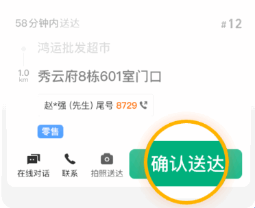 到达商家地址后,及时点击「确认到店」。禁止提前点确认到店。如果系统提示到店异常,按照APP指引上传商户门头照片等材料进行举证。