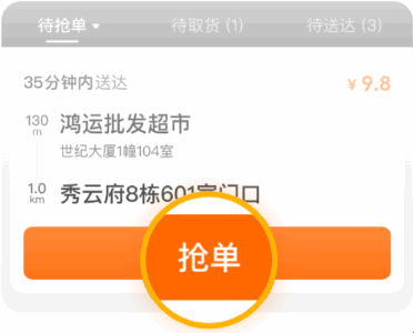 进入抢单大厅,查看待抢订单,选择时间和距离合适的订单,点击「抢单」。