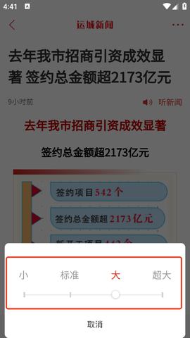 运城新闻app怎么设置字体大小?