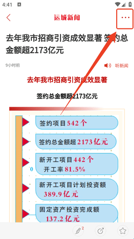 1、我们进入到新闻阅读页后,直接点击右上角三个点按钮。