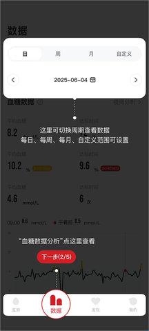 3、连接成功后,即可在APP上实时查看血糖数据,掌握健康动态。