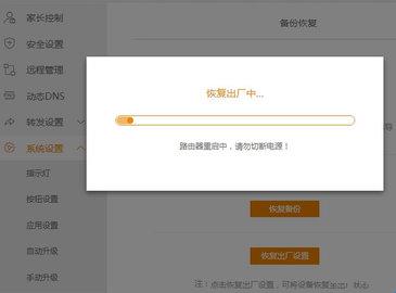 5、然后斐讯K2路由器就会恢复出厂设置了,可以看到恢复出厂设置的进度,如下图。