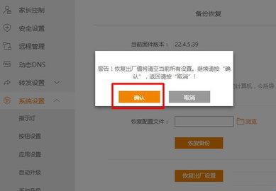 3、点击“系统设置”——>“备份恢复”——>点击右侧界面中的“恢复出厂设置”选项,如下图所示。