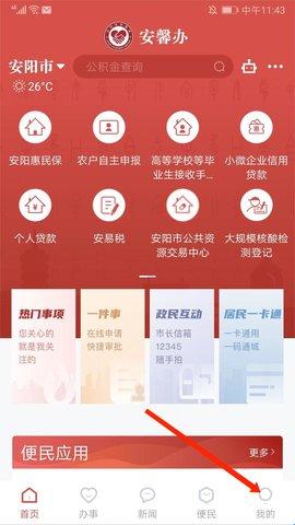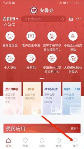打开安馨办APP,进入主界面,点击右下角【我的】。