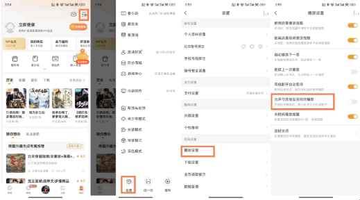 安卓用户请登录懒人听书APP,点击【我的-右上角-设置-应用设置】找到播放设置,进入播放设置可以打开允许与其他应用同时播放的开关,打开后音频将不会自动暂停,您可以根据个人需要选择开启或关闭该功能。