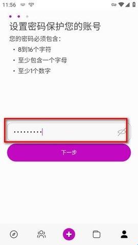 3、然后就是按照要求设置密码了,点击下一步完成注册。