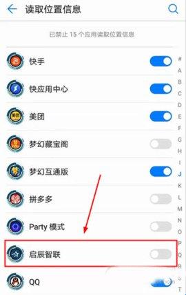 在“读取位置信息”中找到启辰智联应用,关闭定位权限即可。