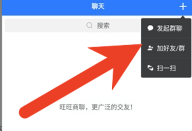 1、下载旺旺聊天之后,需要点击主页右上角的“+”号!