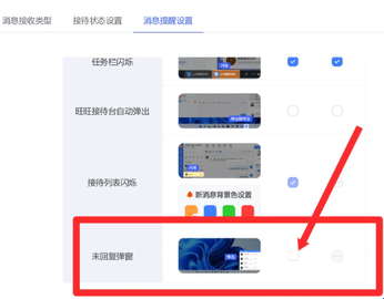 3、在消息提醒设置里边找到未回复弹窗,取消勾选。