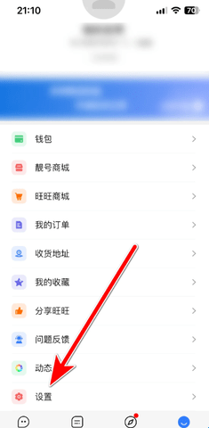 1、进入到旺旺聊天界面点击右下角进入到个人界面点击“设置”。