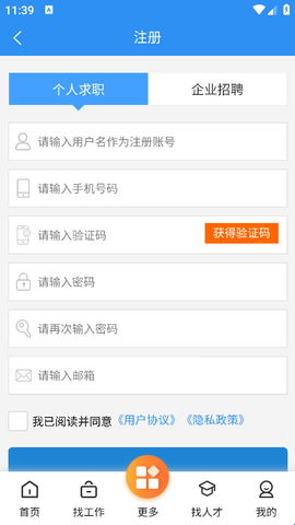 3、在这里有个人求职和企业招聘账号注册,根据你的身份选择,然后按照要求填写信息,就可以完成注册了。