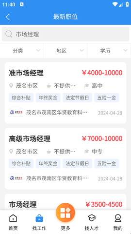 安卓茂名招聘网app是一款专注于茂名地区的专业人才网站平台,主要立足于茂名本地,该平台与本地的各类企业进行了深度合作,会在第一时间发布各个企业的最新招聘岗位,如果你正在茂名找工作的话,可以来该平台看看,上面的职位信息都是最新的,并且各种工作岗位都有。