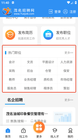 1、大家进入软件后在首页这里有很多热门职位,找到你的职位进入。