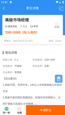 3、找到后点击进入详情页,在里面就可以去申请职位,并投简历了。