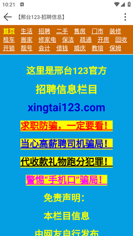 1、邢台当地影响力非常大的门户综合平台,信息服务齐全,内容更新也非常及时。