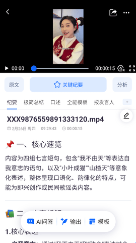 5、这样我们就能在下方看到从视频中提取的文字纪要内容了。