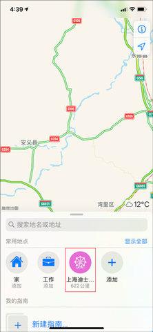 2、在搜索栏中查询想要定位的地名,如上海迪士尼;