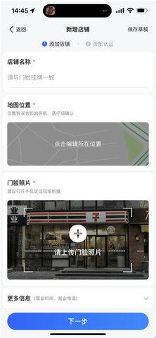 4、然后就是按照要求依次填写店铺信息,点击【下一步】