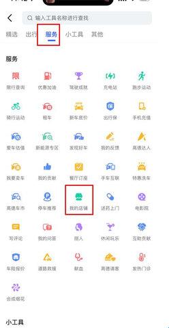 2、切换到新页面后,点击顶部的【服务】选项,再点击【我的店铺】