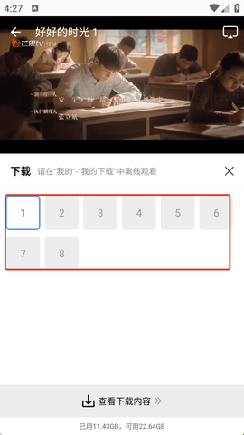 3、选择没有观看的影视集数后,用户就能直接进行线上缓存。