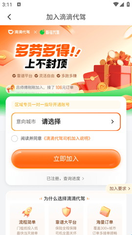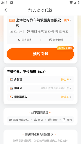 3、各位准备成为代驾的司机朋友可以通过该平台上传证件,完成认证审核成为代驾。