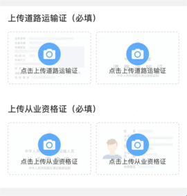 6、接下来用户再次上传道路运输证、从而资格证等图片上传。