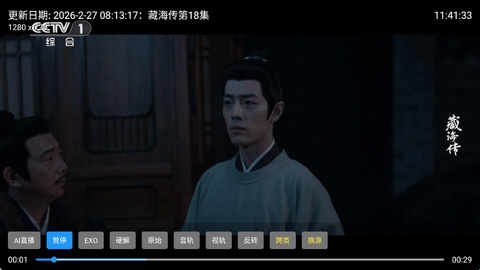 2、加载成功后会直接,将用户带到CCTV1中,观看实时内容。