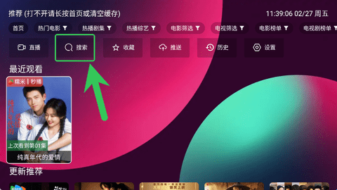 1、首页推荐界面中,点击中间的“搜素”按钮进入到搜索界面中。