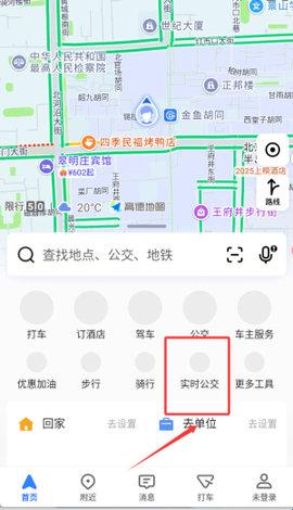 3、此时想看周围公交车的用户,点击下方的“实时公交”即可看到公交实时位置。