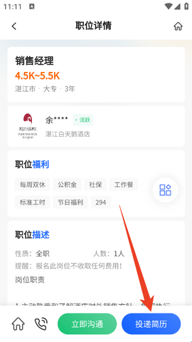3、找到自己心仪的工作后点击进入,在里面就能去投递简历了。