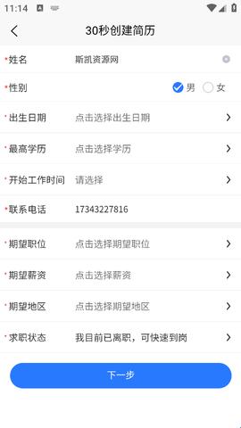 3、最后大家按照步骤填写信息就可以制作自己的简历模板了。