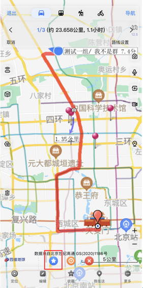 a、如需选择收藏夹中的位置为途径点,点击星型图标,从收藏夹中选取途径点;