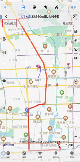 路线中如需经过某地,可以点击“添加途径点”