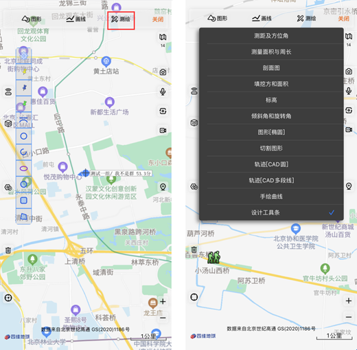 (3)测绘:点击“测绘”选择自己所需功能