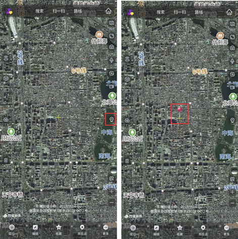 点击左下角“定位”图标,屏幕中心点即可回到当前所在位置;