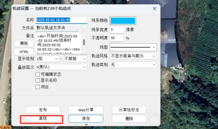 3、这样就会跳出轨迹设置界面,我们直接点击高级就可以了。