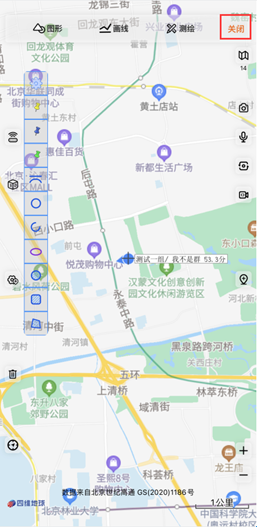 b、划动地图,将途径点定位在屏幕中间“+”位置,点击屏幕下方的”20230303094036“图标,则选择“+”所在位置为途经点