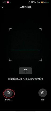 2、选择“扫码连接”,扫描设备上的二维码;若无法找到二维码,点击左下角“手动输入”并输入设备联码。