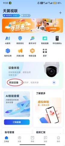 1、打开天翼视联app,点击主界面上的“添加设备”按钮。