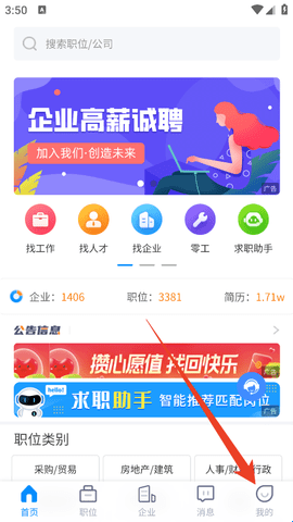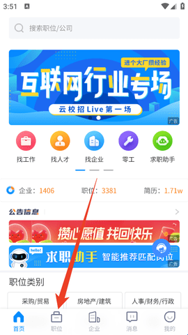 1、进入软件后直接点击下方的“职位”。