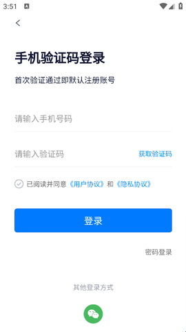 3、在这里输入手机号获取验证码并登录,首次验证通过的用户系统会自动注册的。