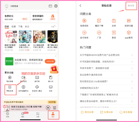 如您碰到总是播放暂停、播放中断的问题,可以通过在【我的页面】-【更多功能】模块-【帮助与反馈】-右上角:【发日志】,给我们发日志,方便我们排查解决。