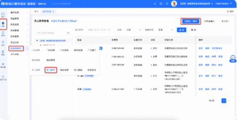点击进入:点击【总部/门店】→【机构与账号】→【员工管理】→【员工账号】