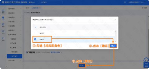 3、勾选对应【角色】→【确定】→【提交】