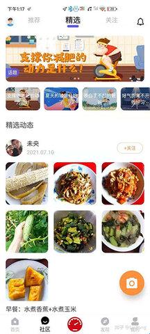 1、享睿体脂秤首页是各种用户发布的减肥过程和活动通告。