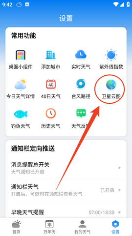 3、在【常用功能】找到【卫星云图】,点击进去。