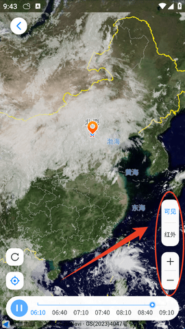 4、这样我们就能看到卫星云图了,右侧加减号可以放大缩小地图。